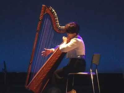 - ハープ演奏家の富田晴世さんによる「千年珊瑚の歌」披露