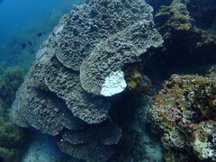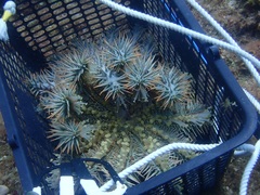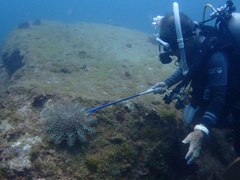 ① サンゴ ②~④ オニヒトデ(サンゴ食害生物) ⑤ シロレイシガイダマシ(サンゴ食巻貝) |