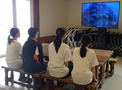 ①~③ ガイダンス(①牟岐町の紹介、②貝の資料館にて、③映像「奇跡の遺産」視聴)