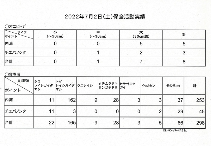 今回も、採取したサンゴ食巻貝の選別・測定、道具の運搬等について、「みなみから届ける環づくり会議」の「ボランティア活動証明制度」