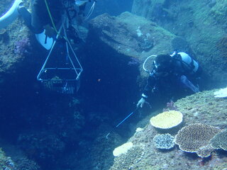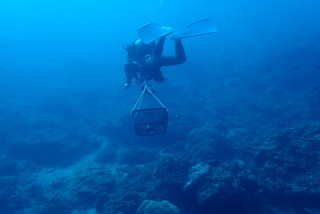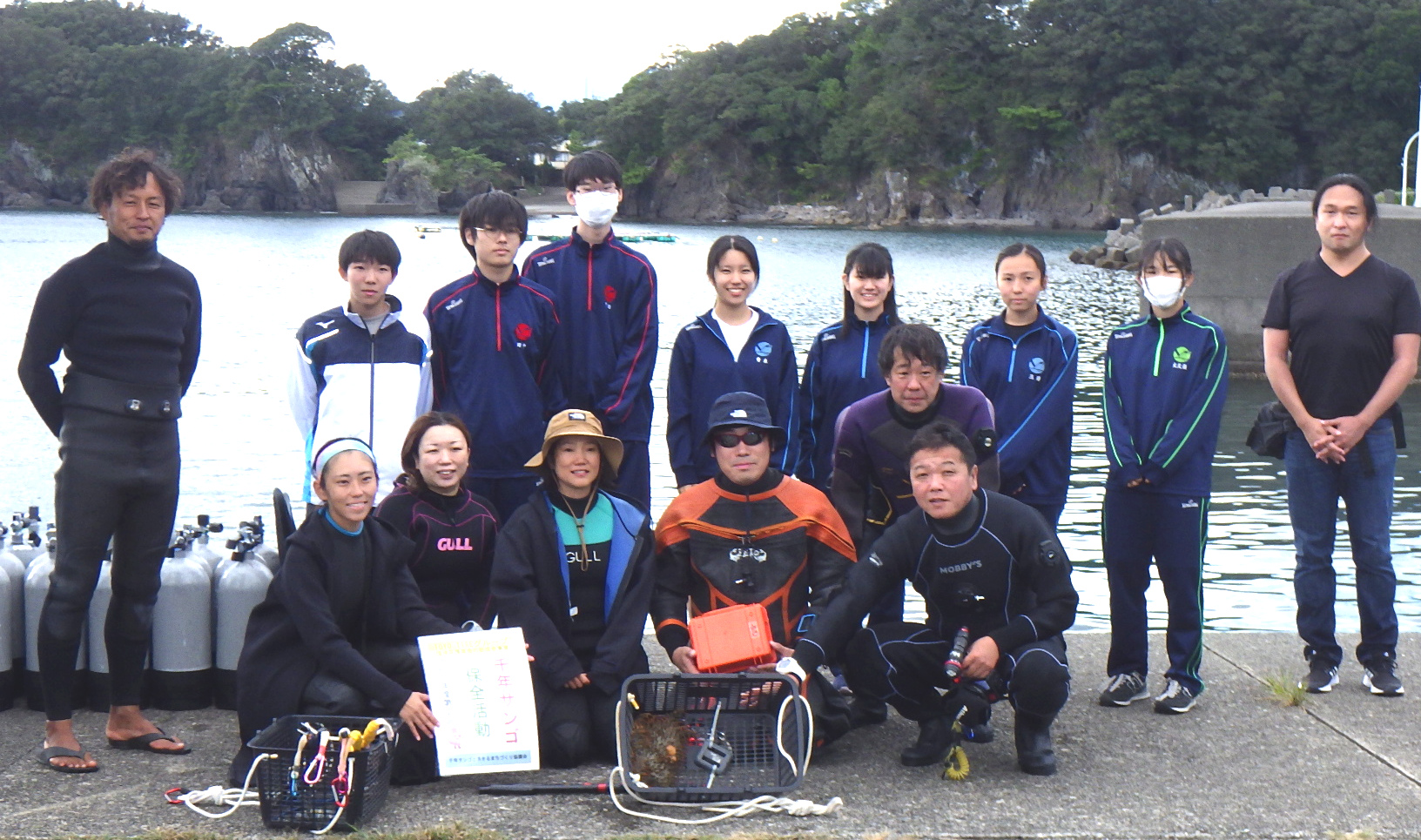 公開日 2023年10月25日 10月21日、牟岐大島内湾・チエバノシタで本年度第2回の保全活動を実施しました。 ○参加者:水中ボランティア6名、高校生ボランティア(陸上)7名 作業船の船長さん 1名、インストラクター 1名、陸上スタッフ 3名 ○駆除生物数…オニヒトデ1匹、食巻貝410個